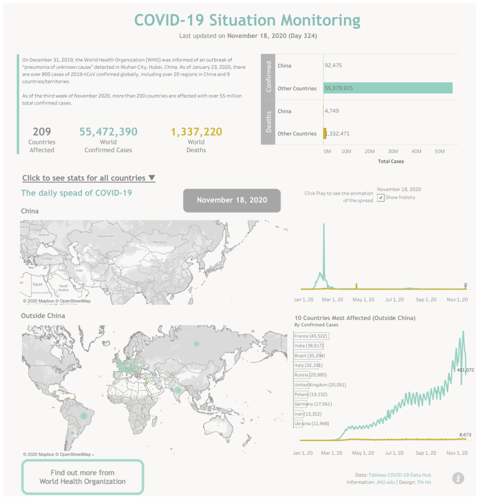 Sarah Burnett also shared with me how initially she was conflicted when publishing her COVID viz and almost took it down due to the negative chatter on social media, but ultimately ended up keeping it up as it provided useful and important data for both Singapore, where she lives, and the world. Her viz is a wonderful representation of a continuously updated viz that stands the test of time.
