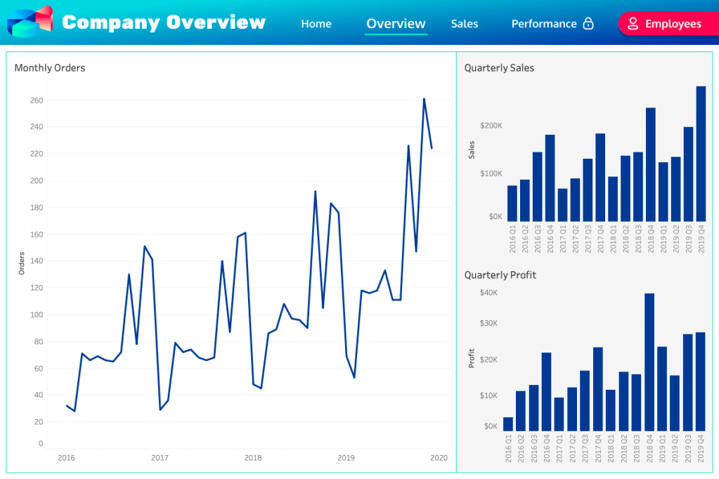 Now, of course you can use Tableau’s native text navigation button option. So why use this method? Well, I find it easier to customize the menu bar. Tableau’s fonts and colors for navigation buttons are limited. Additionally, it’s faster for me to create a few headers in Figma and use the blank navigation buttons than it is to create each button and either an image or text in Tableau.