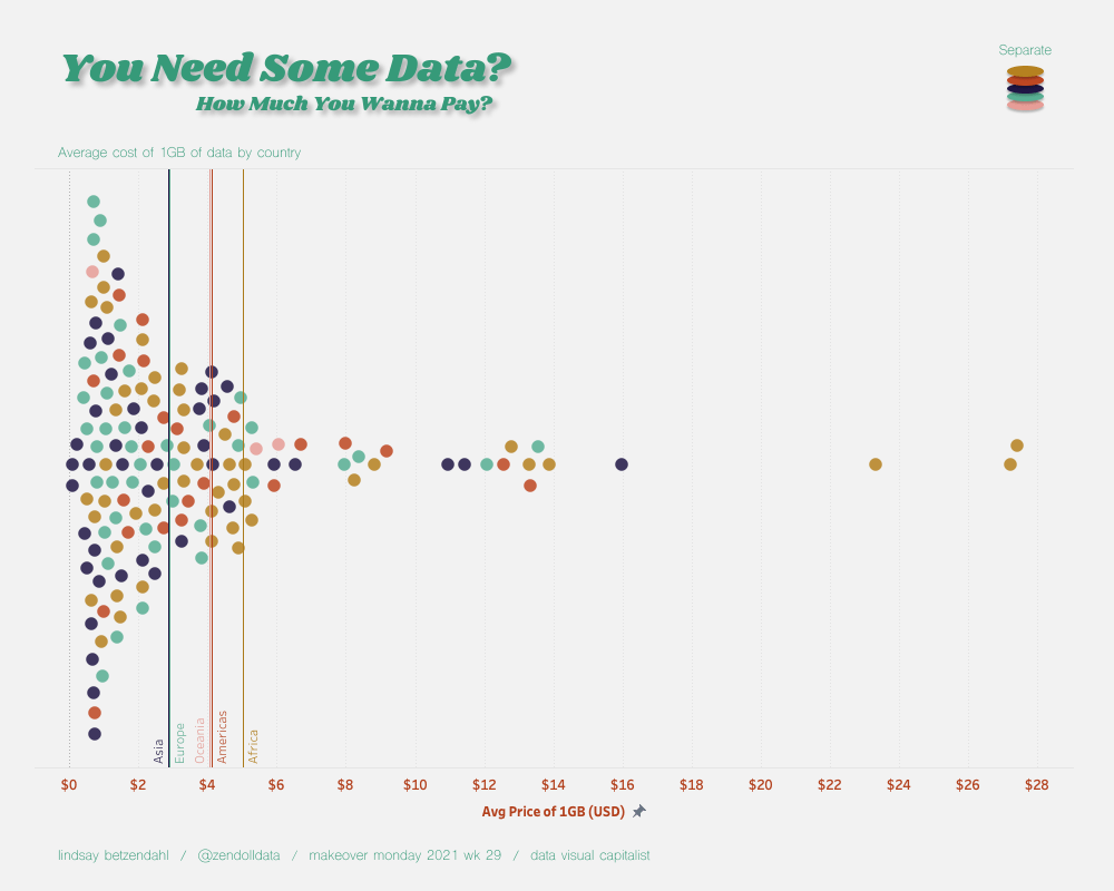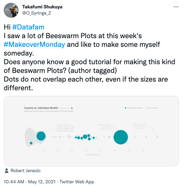 Using a 2021 MakeoverMonday data set from week 19, I created a simple viz that utilized three useful techniques: a background image made in Figma, a beeswarm plot created without calculations, thanks to James Trimble and a Twitter thread with Takafumi Shukuya and Agata Ketterick, and parameter-driven chart changes in one worksheet.