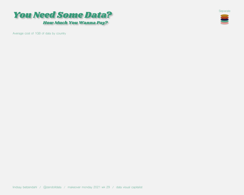 After reviewing the data and deciding on a dashboard size (simple and standard 1000 x 800), I went to Figma to create a background and explored Dribbble for some color ideas. Since data usage is a more modern luxury, I thought it would be fun to use a retro color palette to simply juxtapose the topic.